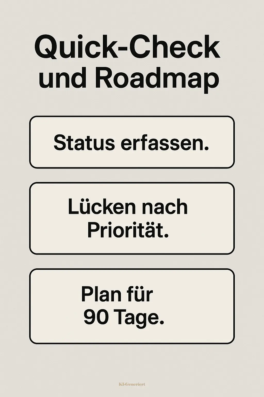 Status erfassen. Lücken nach Priorität. Plan für 90 Tage.